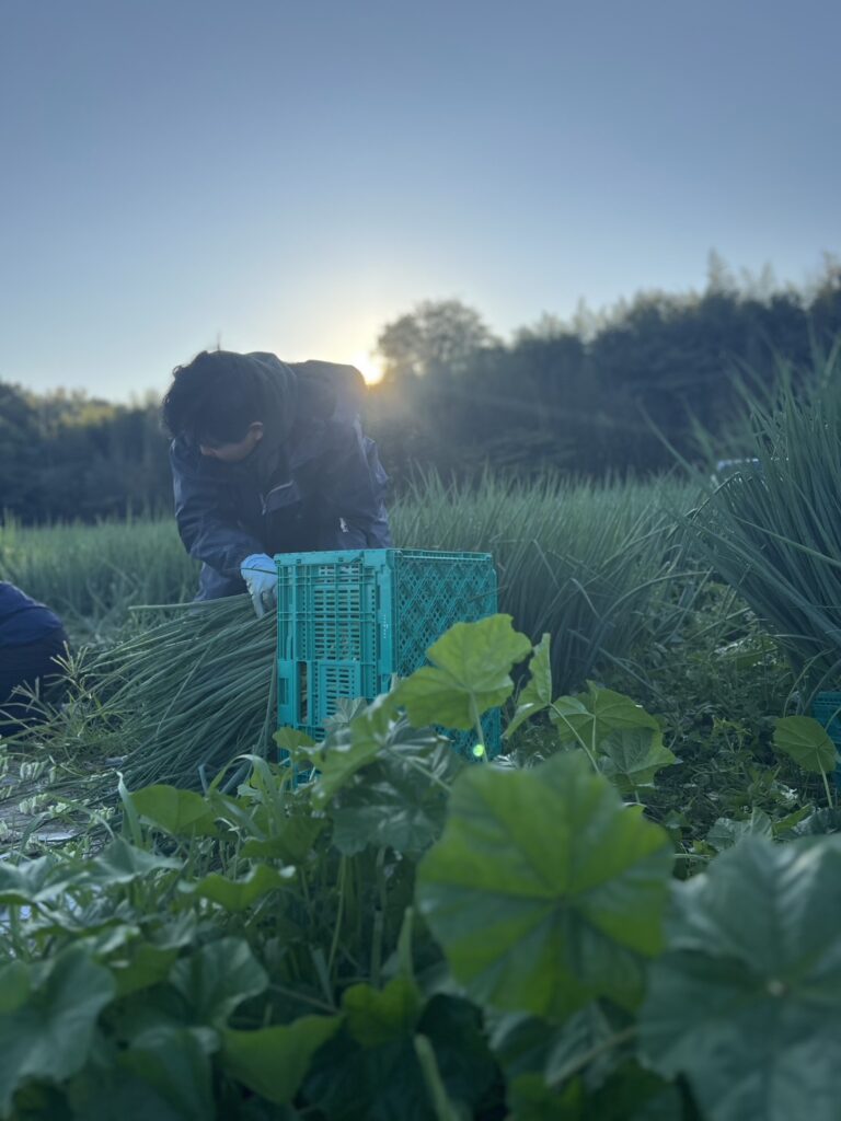 あゆむワークスのネギは阿波市の善入寺島で、その日の朝に刈り取りされます。